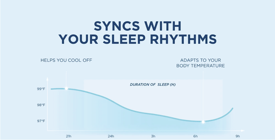 A cooler sleep environment shortens the time to fall asleep and enhances sleep quality.